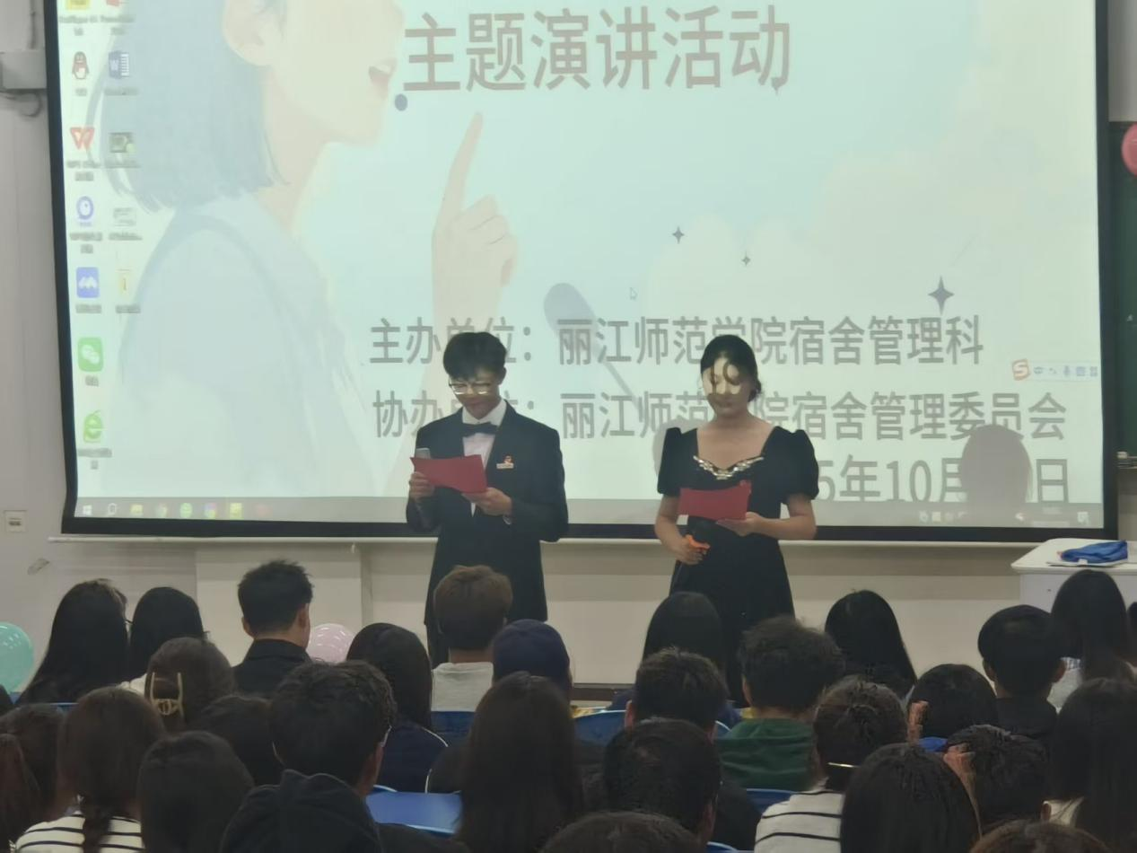 2025年10月19日晚上19:00-21:00,丽江师范学院宿舍管理委员会在博学楼324举办宿舍夜话:“那些藏在记忆里的小事” 主题演讲比赛。300余名同学齐聚一堂,10名参赛选手用真挚的语言、生动的故事,共同开启了一段穿越时光、温暖心灵的记忆之旅,记忆的星火照亮了青春之夜。