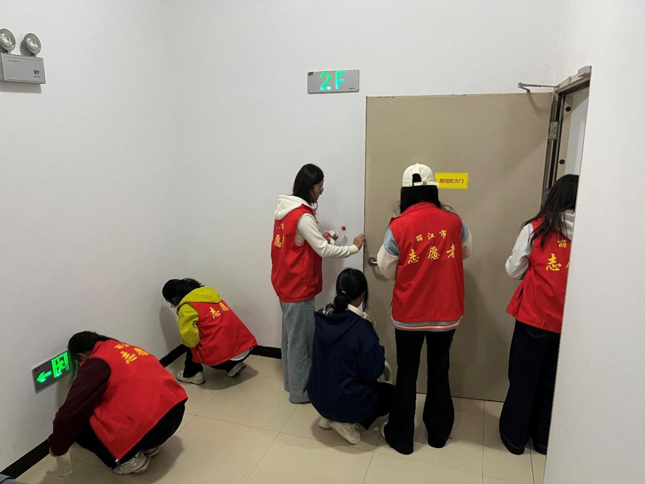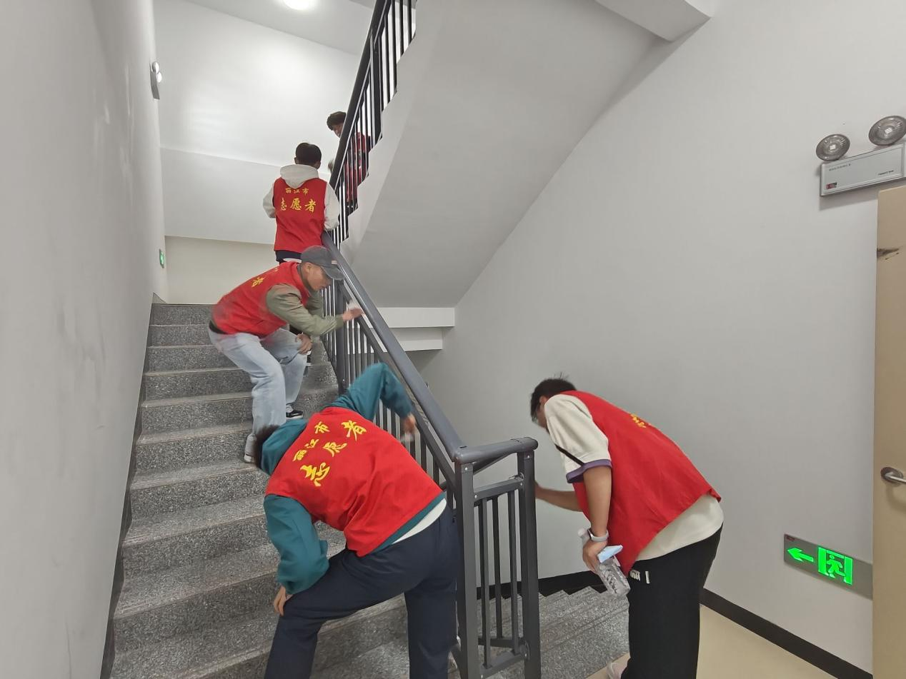 下午 14:00220 名身着志愿者马褂的同学准时在田径场集结。活动以 “网格化分工、专业化清扫、团队化协作” 为原则,将参与者划分为 4 个大组、44 个专项小组,分别对接东苑 4 栋宿舍楼的 11 个楼层,实现公共区域清洁全覆盖。在各小组组长的统筹带领下,同学们迅速投入劳动实践:楼梯间里,大家逐阶擦拭扶手、清理墙面印迹与蛛网,对顽固污渍蹲地精细化清洁,让地面重拾洁净光泽;电梯轿厢内,志愿者们不仅擦拭壁面与按键面板,更细致清理门体缝隙积尘,兼顾 “面子” 与 “里子”;公共盥洗间与卫生间区域,同学们重点攻克洗漱台死角、洗衣机周边污垢,用双手消除卫生盲区,让社区环境焕然一新。